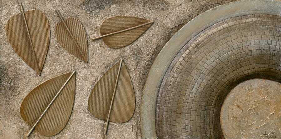 Altın Yapraklar ve Çember Kabartmalı Tablo
