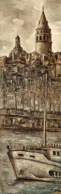 Kasvetli Galata Kulesi Manzara Kabartmalı Tablo
