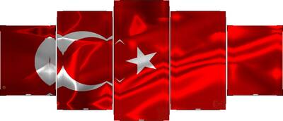 Kırmızı Türk Bayrağı Beş Parçalı Kanvas Tablo