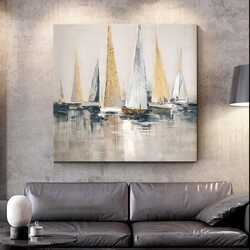 Varaklı Yelkenler Yağlıboya Dokulu Tablo