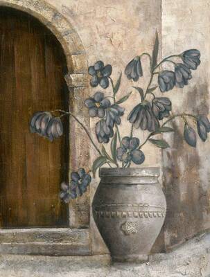 Vazoda Mavi Çiçekler Kabartmalı Tablo